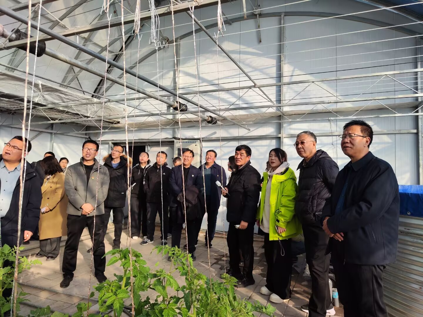 为深入贯彻落实新时代党的建设总要求,推动党建与业务工作深度融合,2025年12月3日下午,生物工程学院党支部联合酒泉市农技推广中心党支部,组织党员赴中以(酒泉)绿色生态产业园开展“党建联建强根基,智慧农业探新路”主题党日活动。学校党委委员、副校长王金明、中国农科院蔬菜花卉研究所研究员余宏军受邀出席活动,双方党员代表共计20 余人参加。